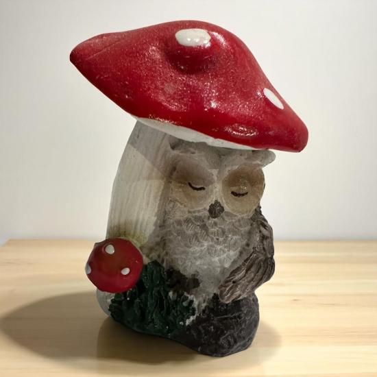 キノコの質感やフクロウのディテールにまでこだわりを感じることでしょう。手に取ると、そのしっとりとした質感が心地よさをもたらします。玄関先やリビングの一角に飾れば、どこか懐かしい雰囲気を演出してくれることでしょう。