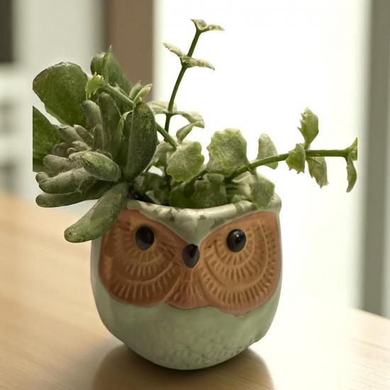 フクロウは日本では知恵の象徴とされていますので、心を癒やし、知恵を授けてくれるかのような存在になることでしょう。植物を植えれば、生命力あふれる緑とフクロウの可愛らしさが共存し、癒し空間を演出します。リラックスした時間を過ごすリビングやサロン、癒しを感じる寝室やリラックススペースにぴったりです。