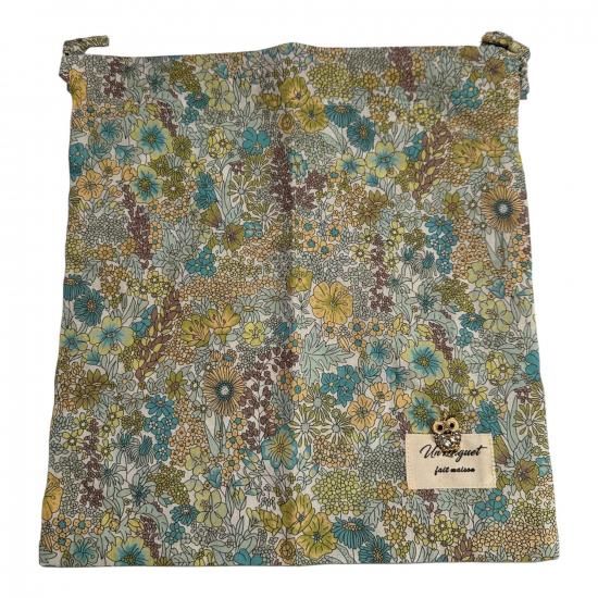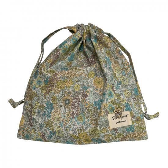 この可愛らしい花柄のフクロウ巾着は、そのサイズ感が魅力的です。約W25×H27cmという理想的な大きさは、ちょうど良い収納力を持ちながら、持ち運びもしやすい軽量設計です。