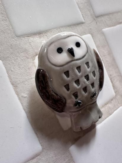 陶器のぬくもり まんまるふくろうさんのバッジ