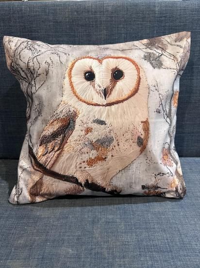 この【クッションカバー】メンフクロウは、刺繍風に描かれたメンフクロウが描かれた愛らしいクッションカバーです。