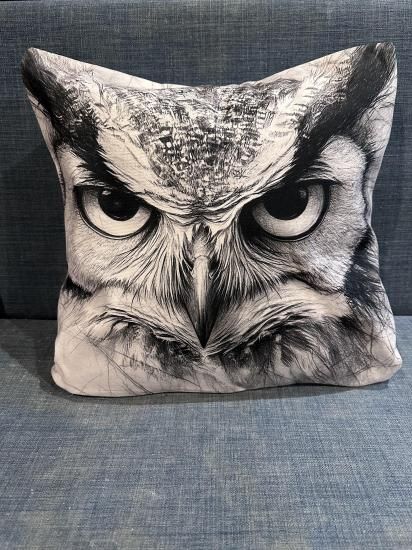 このクッションカバーは、デッサン風に描かれたワシミミズクのイラストが施されています。シンプルでモダンなデザインはモノトーンなカラーリングで、部屋に洗練された雰囲気をプラスしてくれます。カッコいい雰囲気が漂う一方で、洒落た印象も与えてくれるアイテムです。